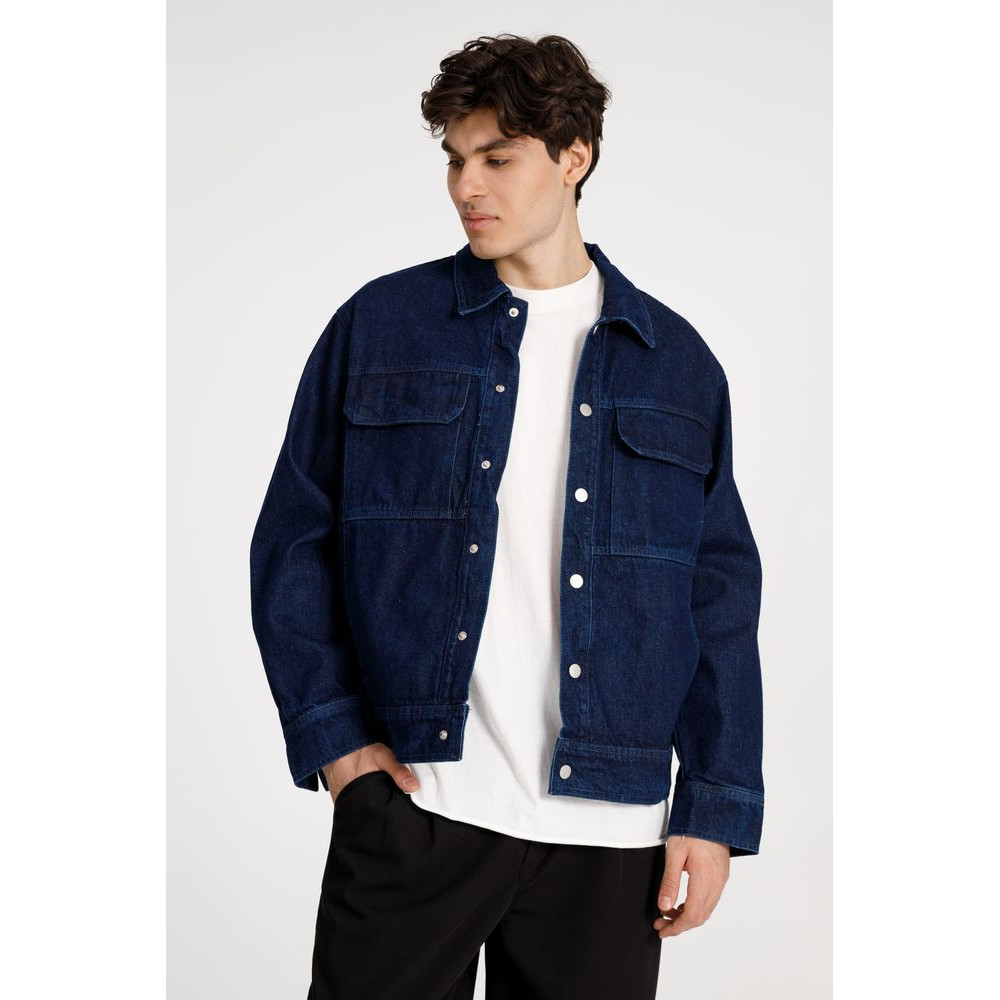 Джинсовая куртка унисекс на кнопках свободной посадки.