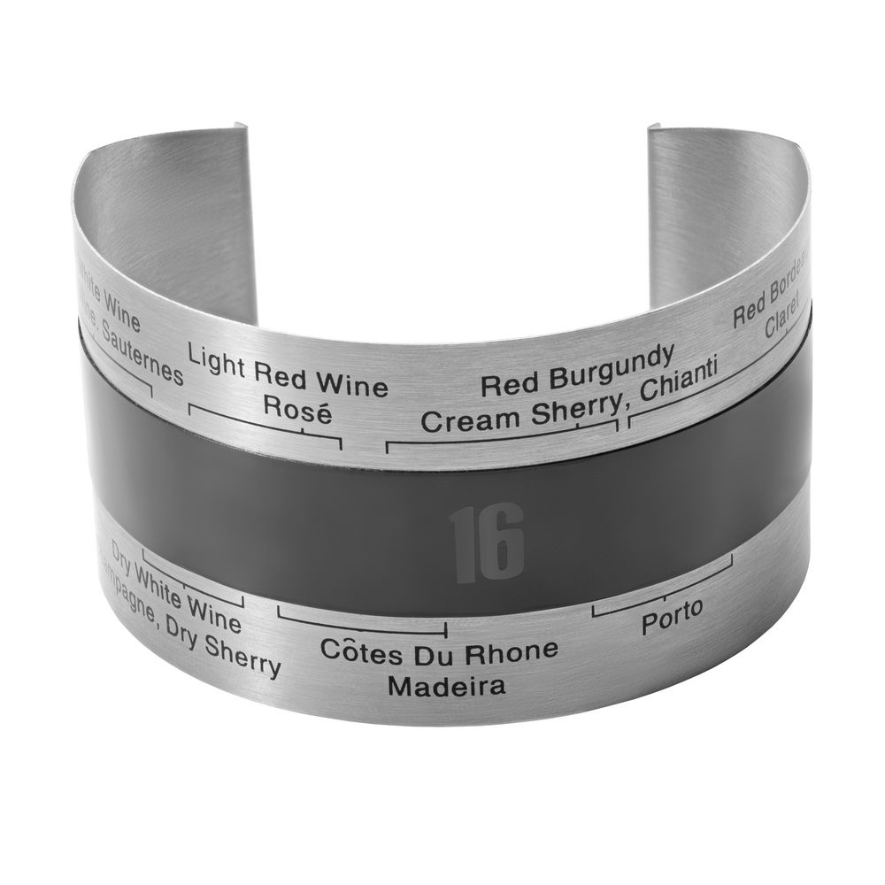 Термометр предназначен для измерения внешней температуры вина в бутылках. Термометр измеряет температуру в диапазоне от 4°С до 24°С и подходит для бутылок разного размера. На изделие нанесена шкала с указанием рекомендуемой оптимальной температуры подачи вина в зависимости от его типа: с Pinot необязательно помнить ее наизусть, достаточно воспользоваться подсказкой.