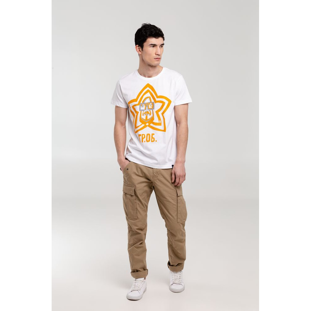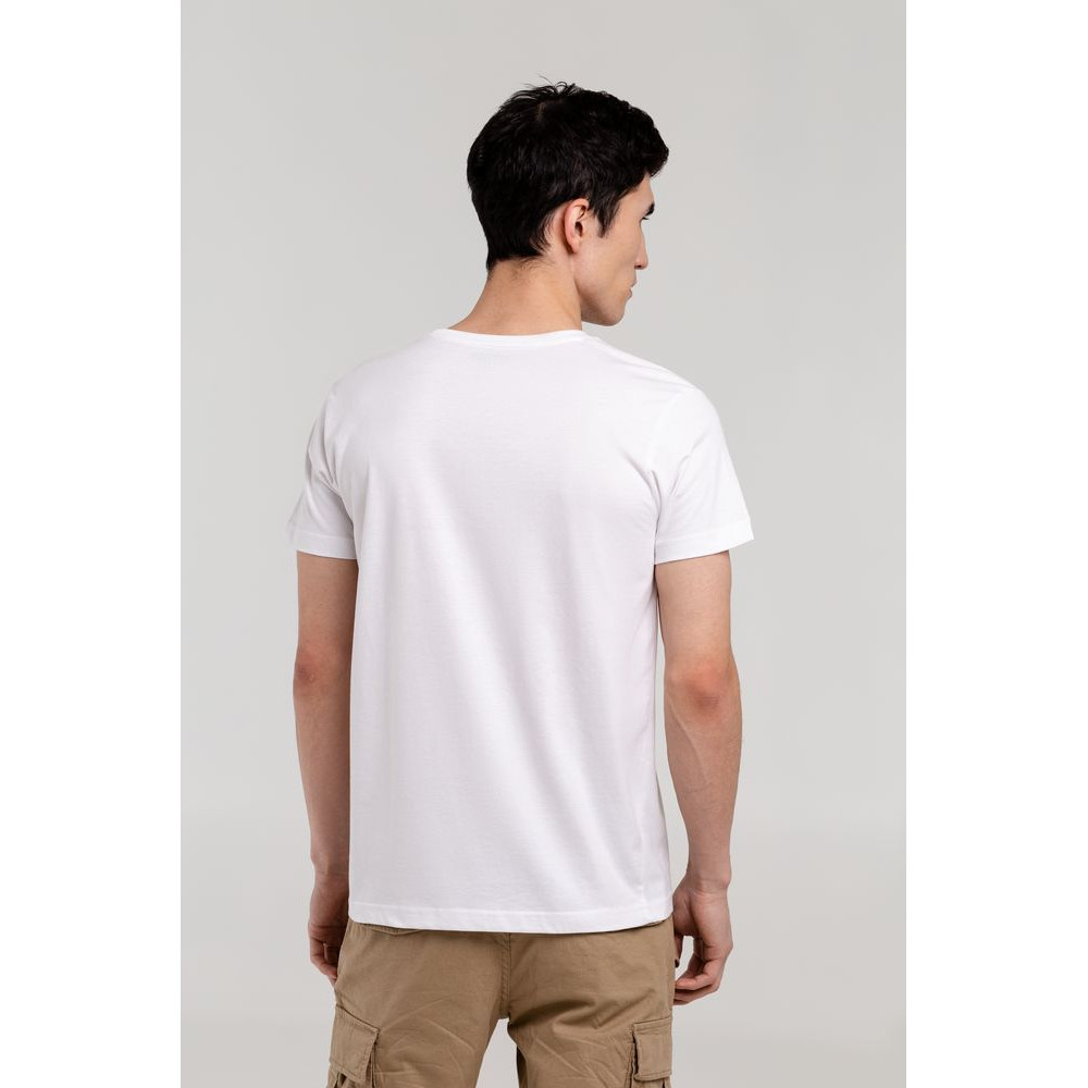 Мужская футболка с круглым вырезом. Двухслойная резинка предохраняет воротник от деформации после стирки.