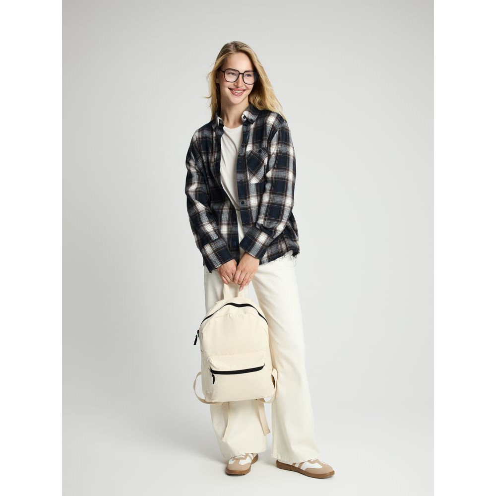 Легкий рюкзак в экостиле — из плотного неокрашенного хлопка с контрастными деталями.