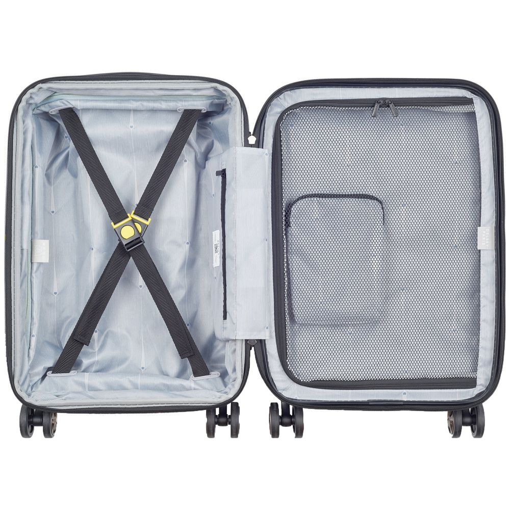 - Чемодан с 2 отделениями: одно из них с фиксирующими ремнями, второе — с разделителем и карманом-органайзером на молнии