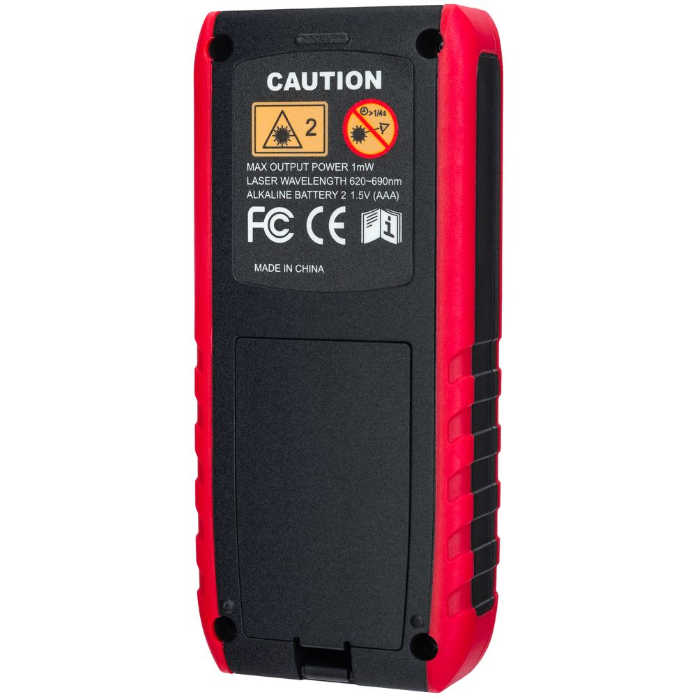 Прибор легко удерживается одной рукой, эргономично расположенные кнопки облегчают управление. Питание устройства осуществляется от 2 батареек ААА, один комплект обеспечивает более 5000 измерений. Функция автоотключения помогает экономить энергию, а индикатор низкого заряда батареи подскажет, когда необходимо заменить источники питания.Лазерная рулетка с ручным (однократный замер) и автоматическим (непрерывное сканирование) режимами работы.- Функция измерения длины: диапазон измерения длины — 0,05-60 м, единицы измерения длины — метры, футы, дюймы, точность измерений — ±2 мм