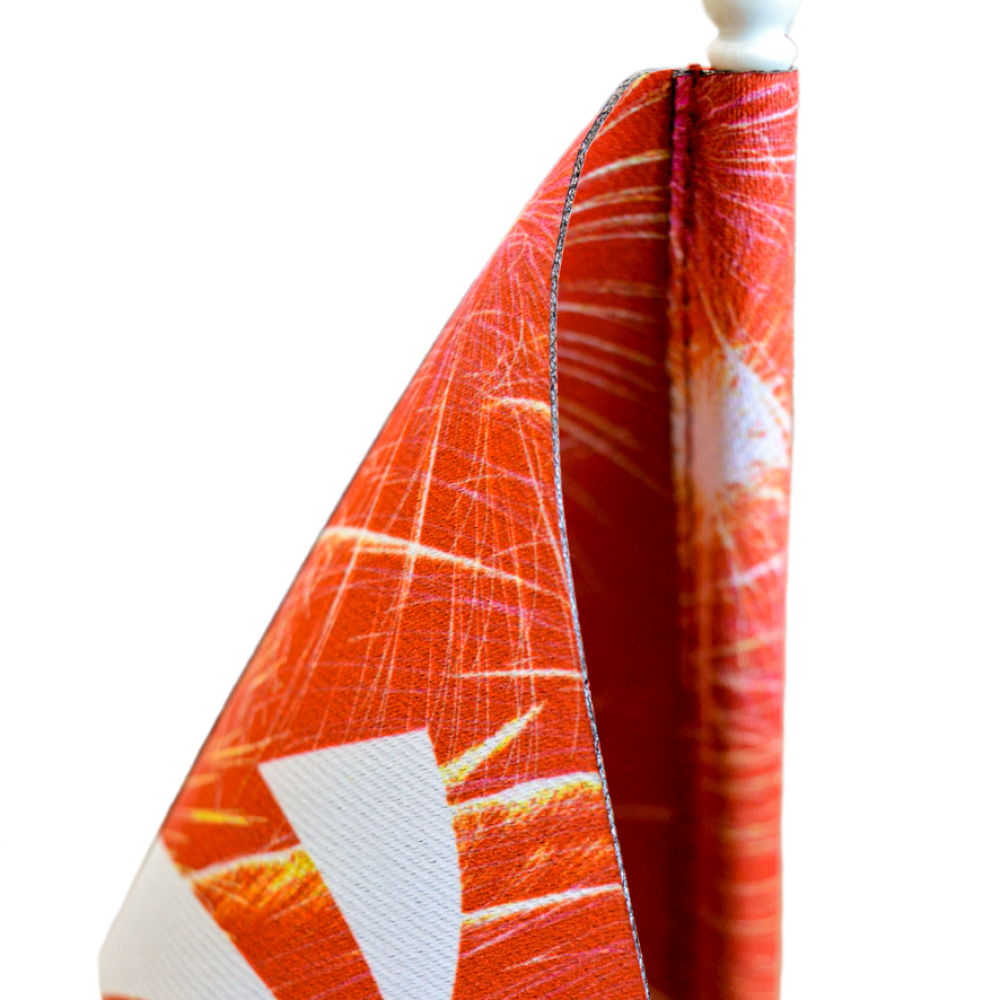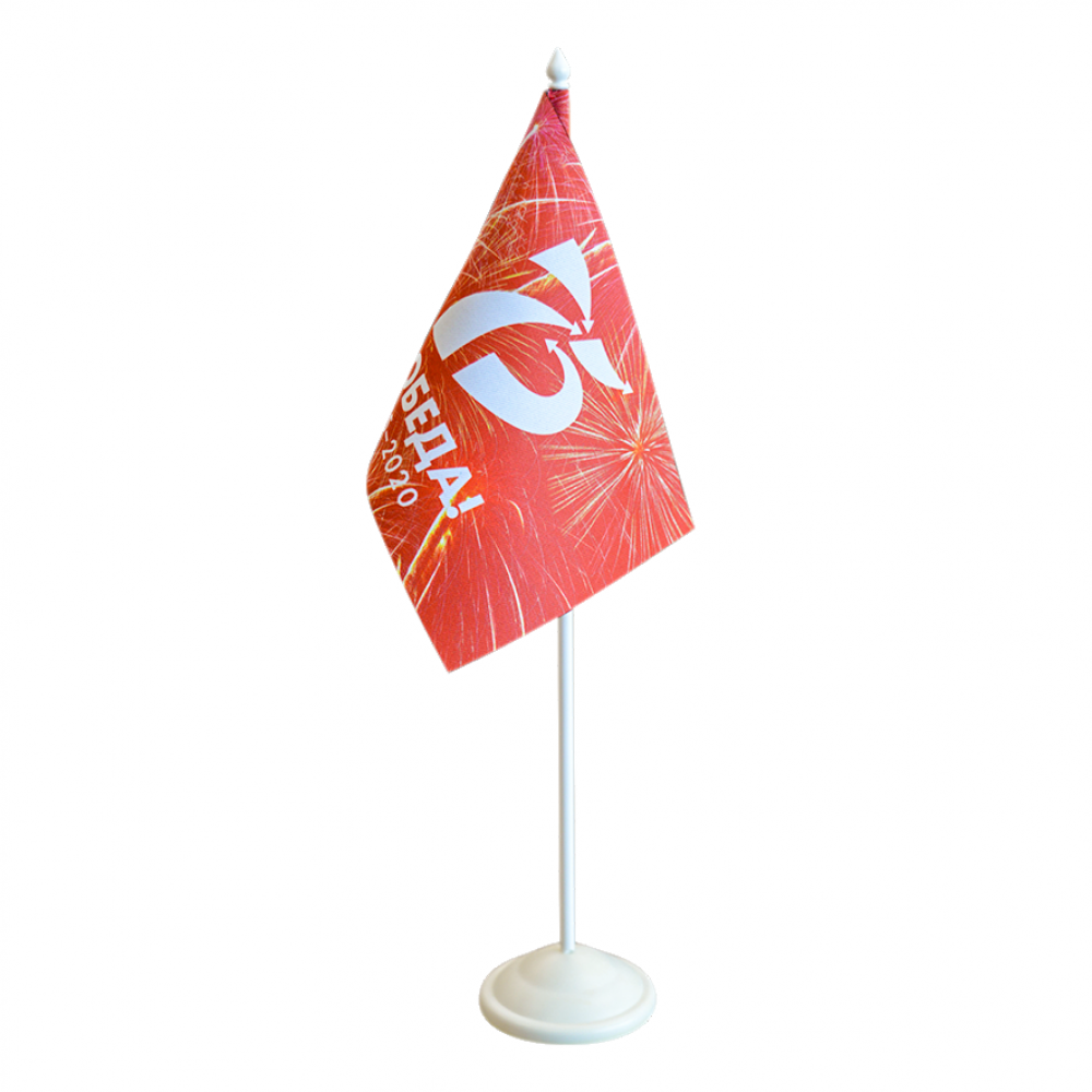 Тканевый флажок из блекаута – идеальное исполнение настольного флажка. В этом случае обе стороны получаются одинаково яркие, т.к. на каждой из сторон наносится прямое изображение. Обе стороны – лицевые, текст читается слева направо. И флажок получается не таким тяжелым, как двухслойный, т.к. состоит из одного слоя ткани. Тканевый флажок из блекаута изготавливается методом сублимационной печати с двух сторон. На лицевой и оборотной стороне макеты могут быть разные. Стандартная обработка тканевого флажка включает в себя: сквозной карман слева шириной 0,8 см, термообрезку по периметру. Флажок крепится на специальную настольную подставку с одним или несколькими штоками. Она может быть пластиковой или металлической по вашему выбору. Флагшток заказывается отдельно.