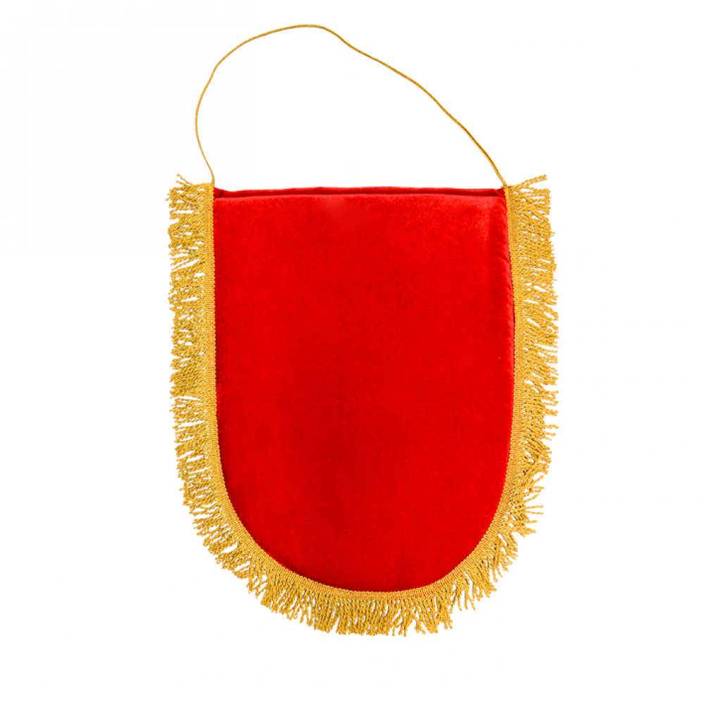Вымпел изготавливается из однотонного бархата, по желанию заказчика обшивается шнуром. Форма вымпела может быть любой.