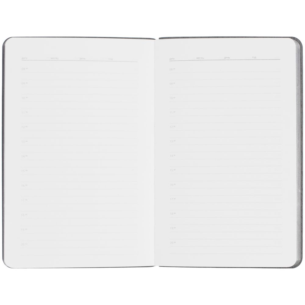 Ежедневник с гибкой обложкой выполнен из материала Soft Touch Ultra, голубой JJ и серого Latte (внутренняя часть обложки).