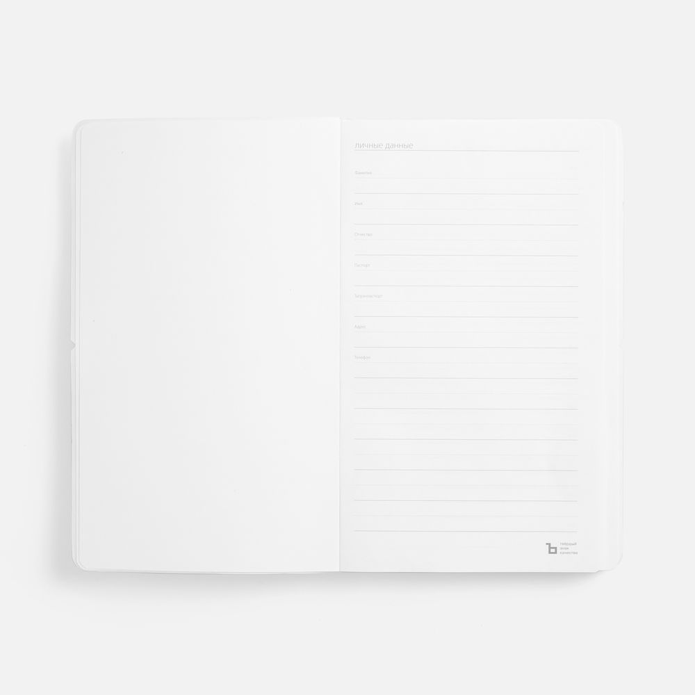 Ежедневник с гибкой обложкой, выполнен из материала Waltz, серебристый DD, дополнен ляссе в цвет обложки с металлическим шильдом.