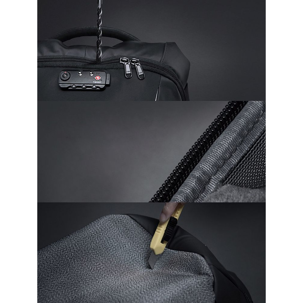 • Рюкзак закрывается на водонепроницаемую молнию YKK, которую можно зафиксировать с помощью кодового замка TSA с функцией таможенного досмотра