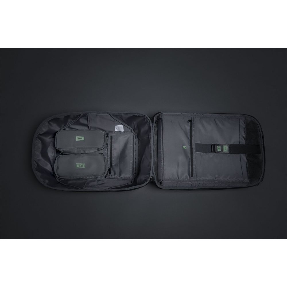 • 2 органайзера для туалетных принадлежностей и электронных аксессуаров можно зафиксировать внутри рюкзака на липучках