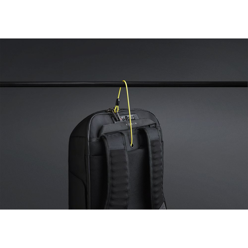 • Трос, которым можно обхватить неподвижный предмет и затем фиксировать бегунком молнии в кодовом замке. Трос выдерживает нагрузку до 50 кг