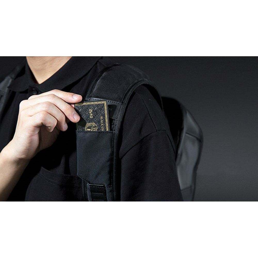 • Дополнительно на лямках расположен карман с RFID-защитой для кредитной карточки и петельки, за которые можно прицепить очки или проводные наушники