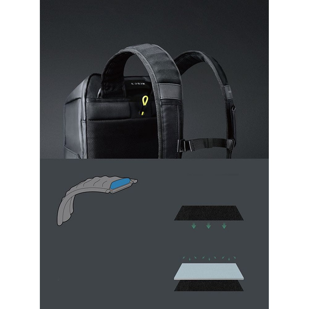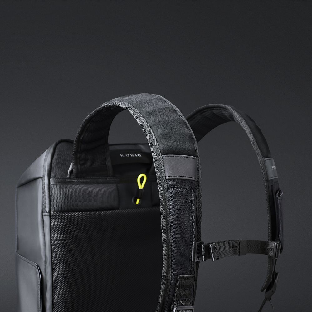 • Анатомическая конструкция рюкзака вместе с широкими лямками и поперечным ремнем на магнитной пряжке перераспределяют часть нагрузки с плеч и спины на талию и бедра, в результате чего вес рюкзака воспринимается на 20-25% легче, чем при использовании стандартных моделей