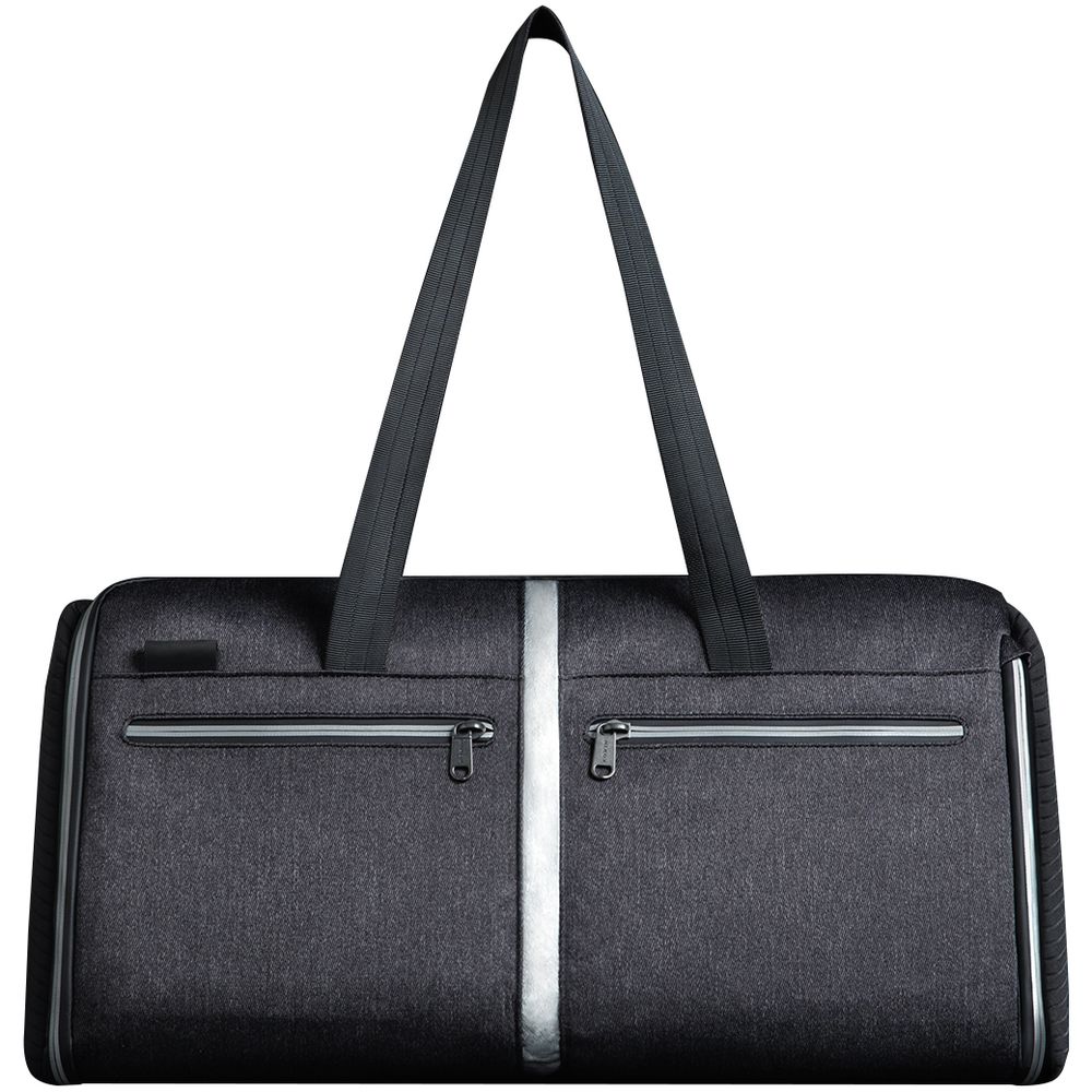Благодаря единой молнии, идущей по всей сумке, она складывается в пришитый чехол, поэтому не займет много места в багаже или в шкафу.