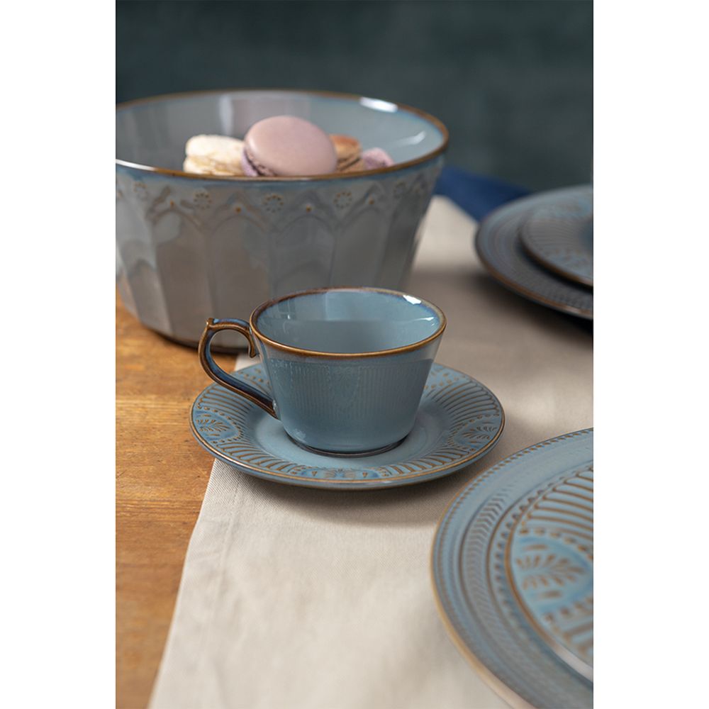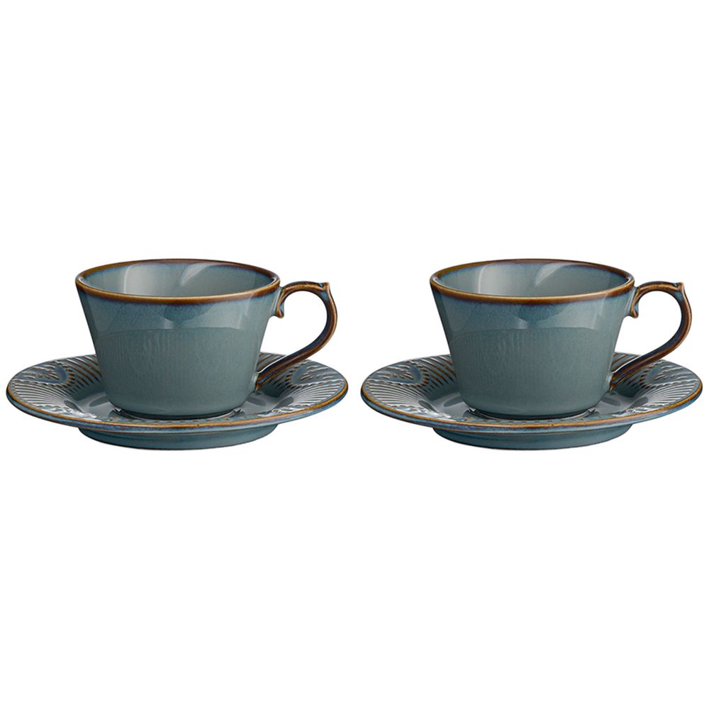 Набор чайных пар в элегантном дизайне украсит стол и разнообразит сервировку. Чашки и блюдца выполнены из высококачественного фарфора и покрыты реактивной глазурью, благодаря которой изделия приобретают неповторимую текстуру.