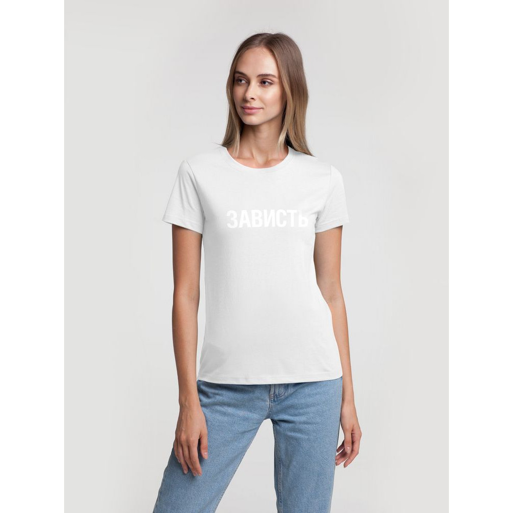 Тем, у кого она черная, не позавидуешь! Идеально белая элегантная футболка не может вызывать у окружающих ничего иного, кроме белой зависти. Чувство, которое неизбежно следует за людьми, умеющими одеваться просто и со вкусом, нужно уметь встречать грудью.Кроеная женская футболка с круглым воротом-резинкой (рибана 1x1 с лайкрой).