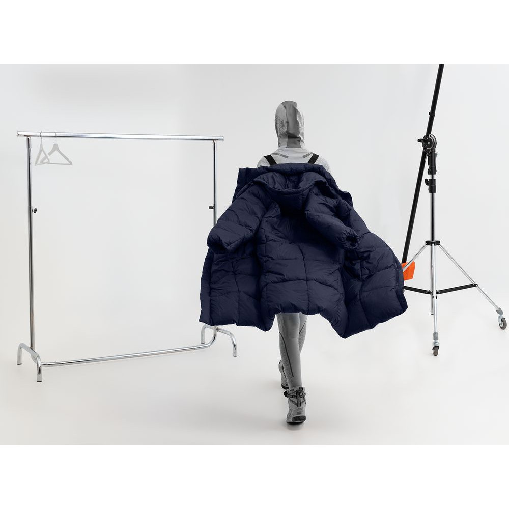 При перепаде температур, например, попадании в теплое помещение с улицы, можно просто накинуть пуховик за спину, как рюкзак, — на лямки с внутренней стороны спинки.