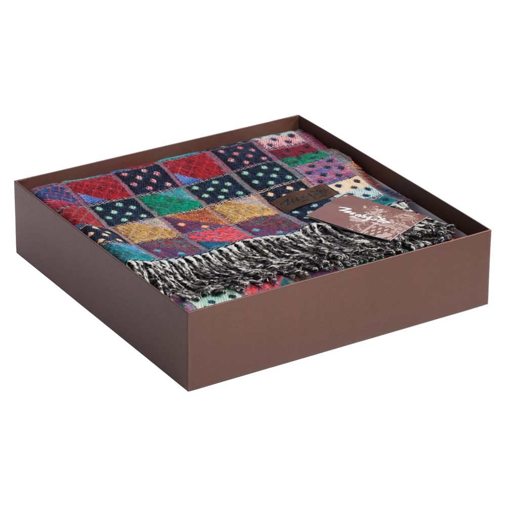 Плед украшен бахромой с двух сторон. В комплекте кожаная бирка для нанесения логотипа.Условия перевозки: при тиражном заказе рекомендуется обрешетка.