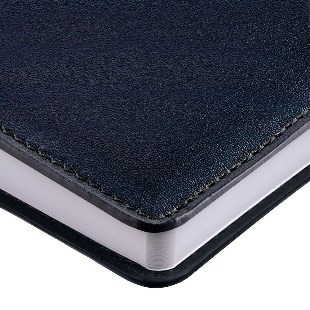 Ежедневник с полутвердой обложкой из натуральной кожи с поролоном. Каптал, репсовое ляссе и окрашенный срез обложки в цвет материала.