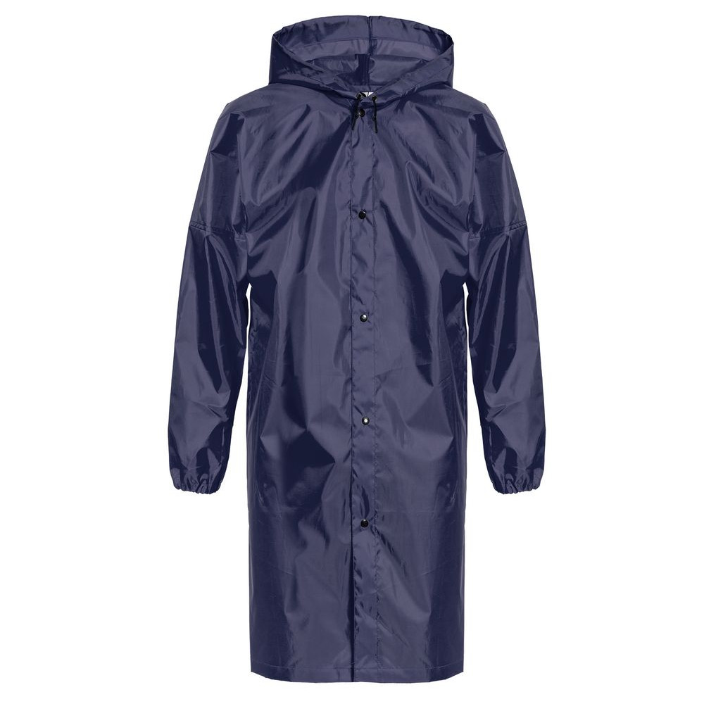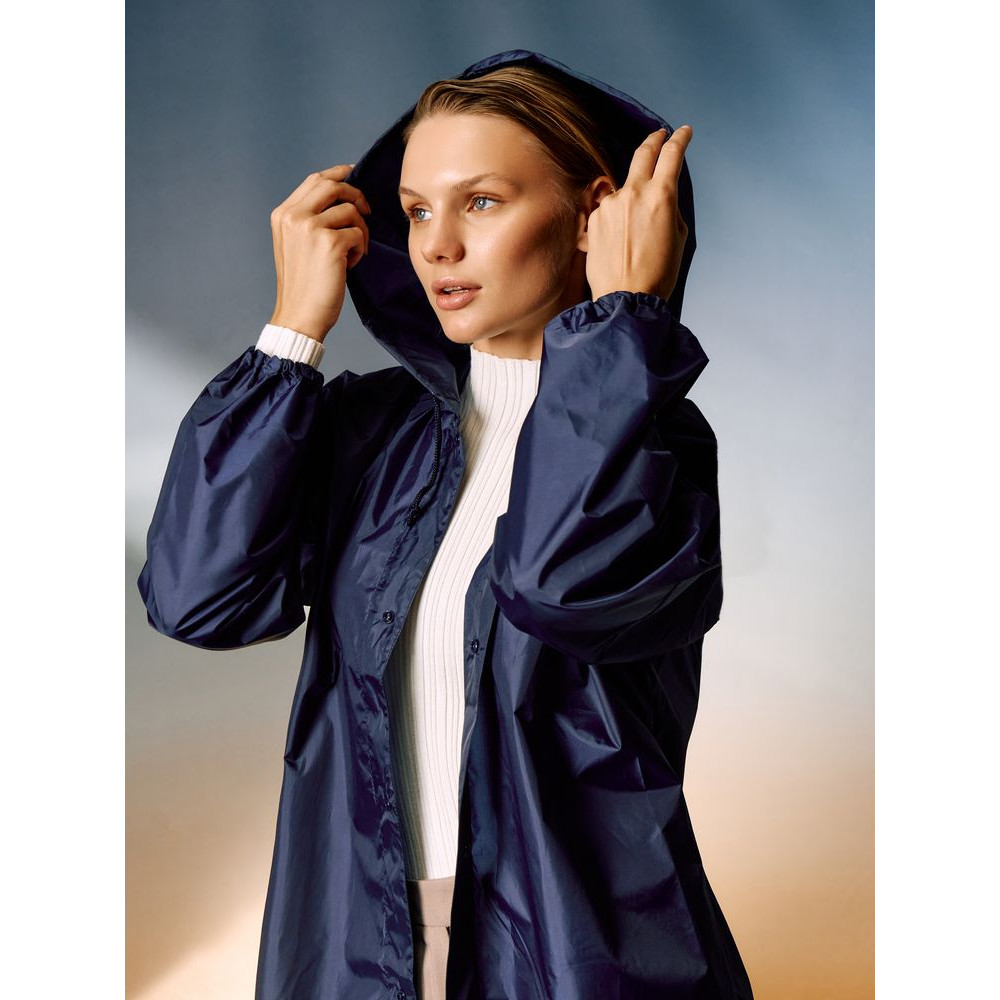 Плащ-дождевик из ткани таффета на кнопках с капюшоном.