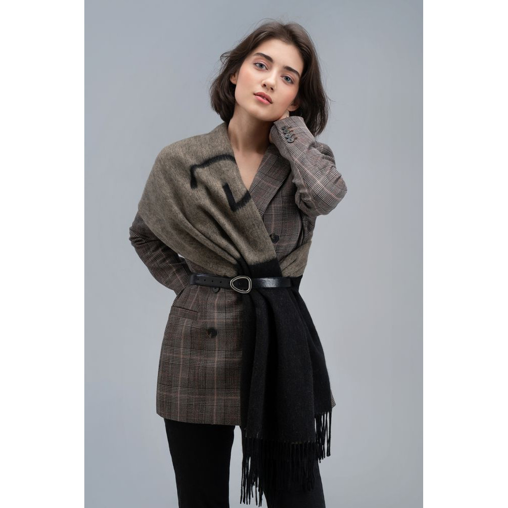 Объемный палантин Charming с геометрическим рисунком добавит строгому образу легкости и задора.