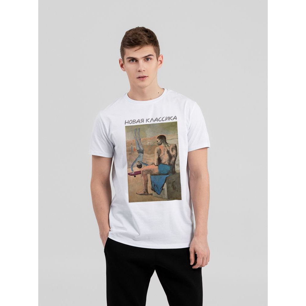 Некоторые современные вещи настолько прочно вошли в наш быт, что, кажется, они существовали всегда. А может так и было? Коллекция «Новая классика» — это попытка разглядеть будущее в прошлом!Классическая кроеная футболка унисекс из гребенного хлопка. Благодаря тонким и длинным волокнам хлопка ткань футболки отличается гладкостью, ровностью и прочностью, отлично сохраняет форму, не деформируются и не выцветает при стирке. Горловина выполнена резинкой 1x1. Слегка приталенный силуэт.