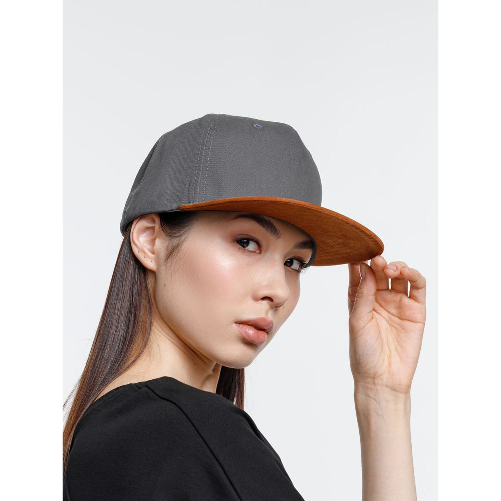 - Плотный контрастный прямой козырек из мягкой, приятной на ощупь ткани с велюровым эффектом