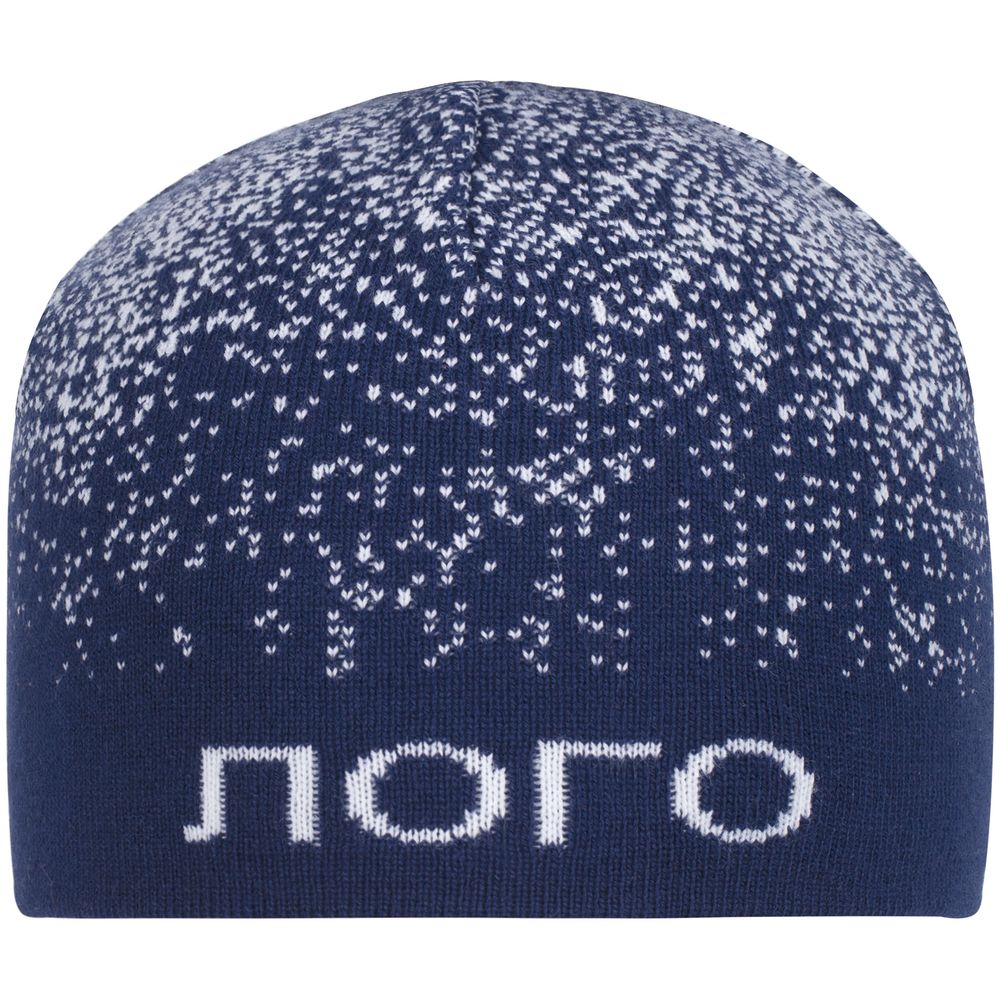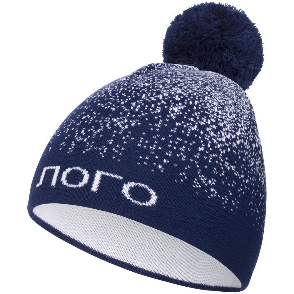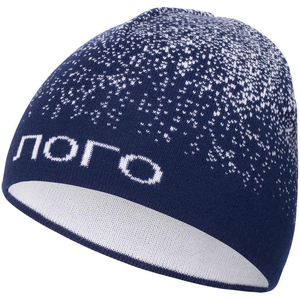Шапка с вывязанным логотипом и индивидуальным рисунком в фирменной цветовой гамме.
