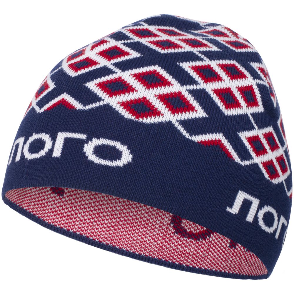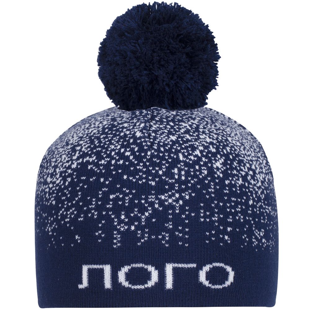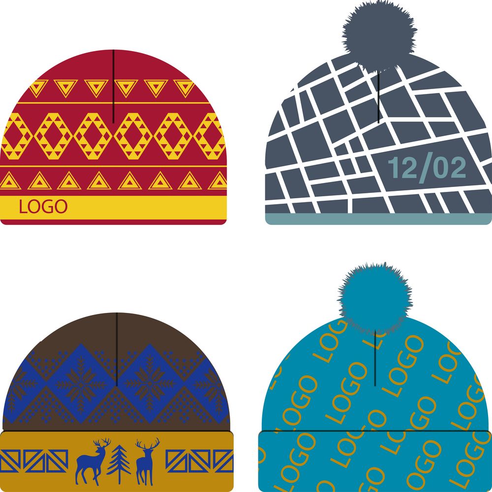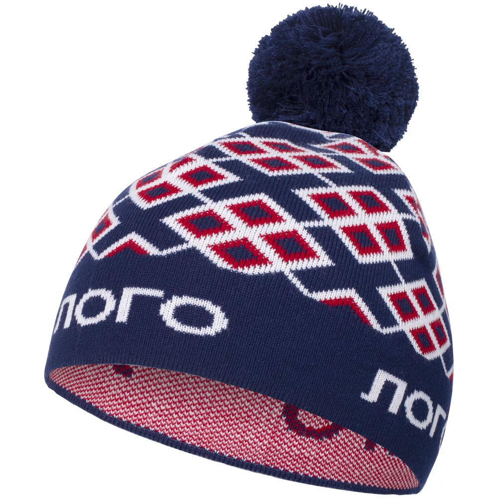 Шапка с вывязанным логотипом и индивидуальным рисунком в фирменной цветовой гамме.