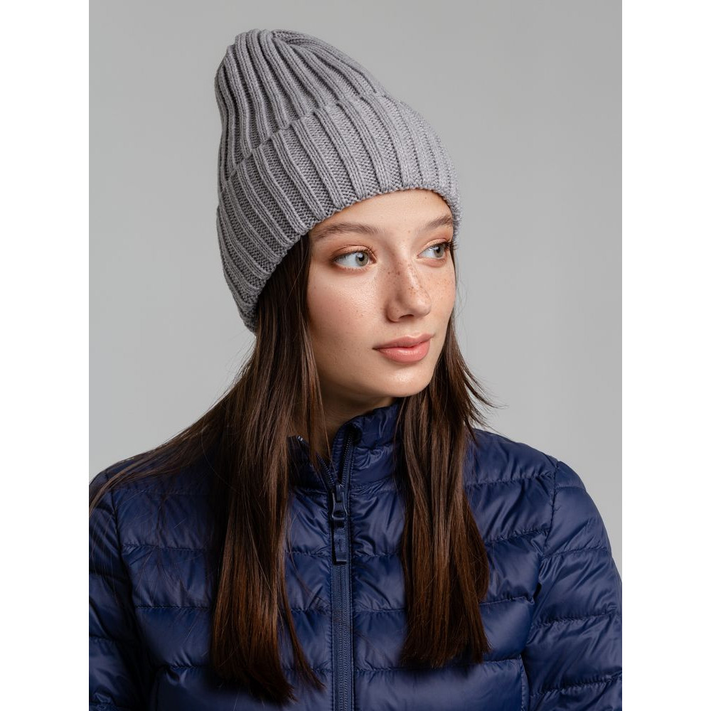Однослойная шапка фактурной вязки с флисовой подкладкой.