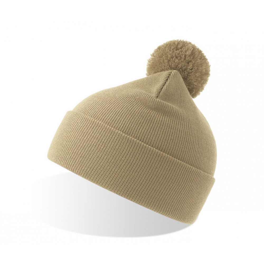 Параметры: Шапка вязаная двойная Wind-S, с отворотом и помпоном, бежевый, 100% переработанный полиэстер