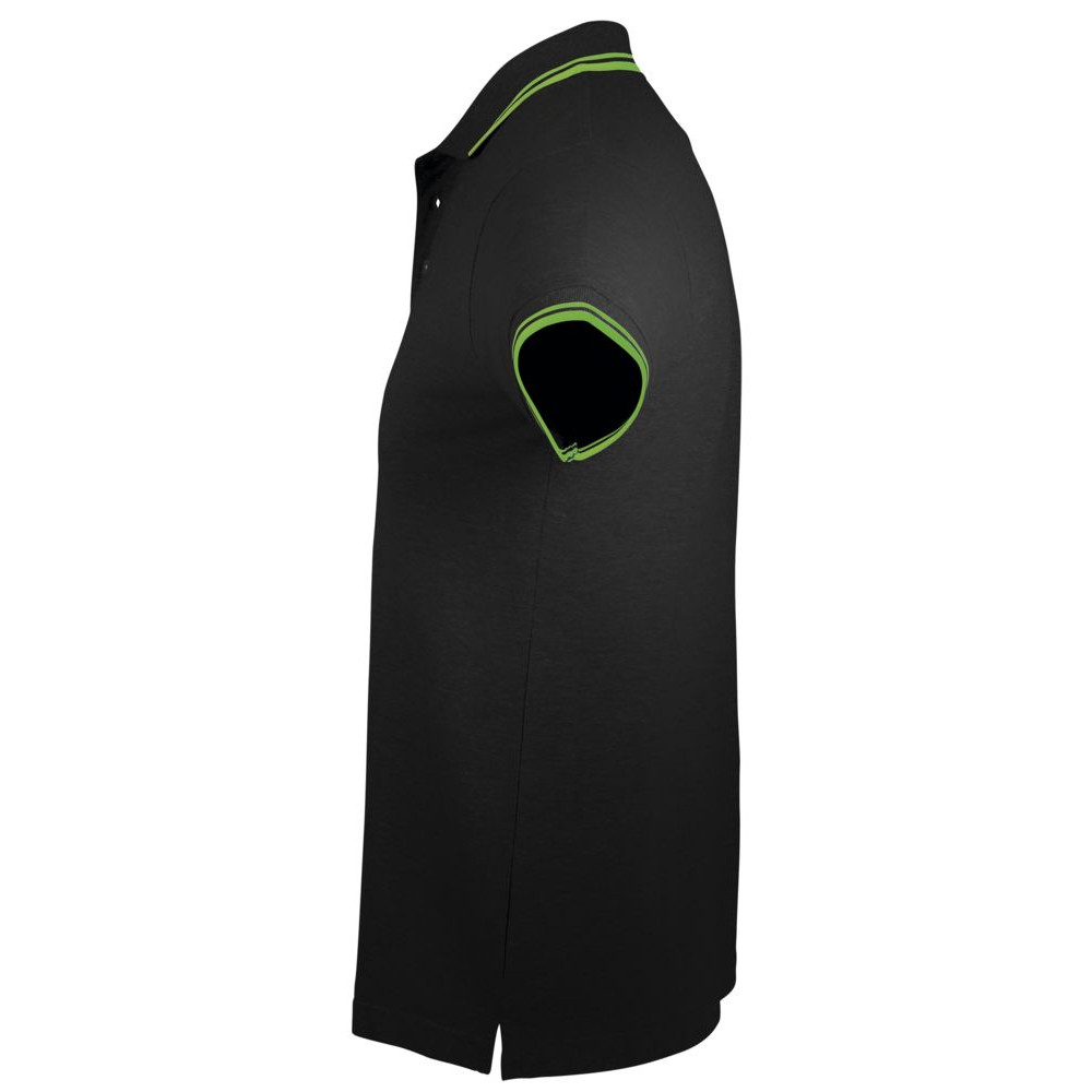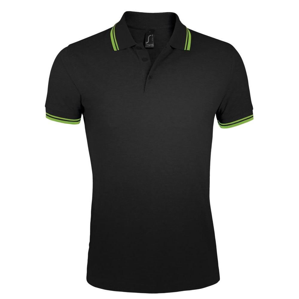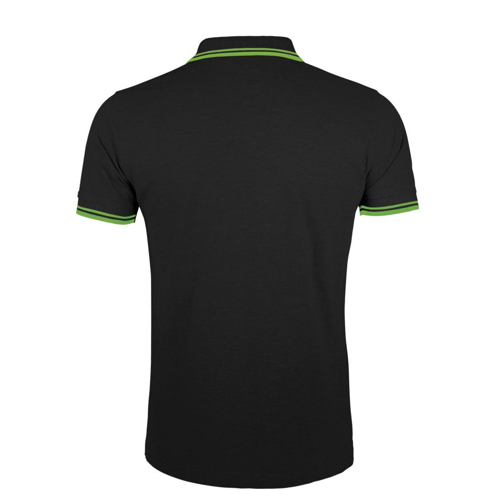 Рубашка поло мужская Pasadena Men 200 с контрастной отделкой, черная с зеленым