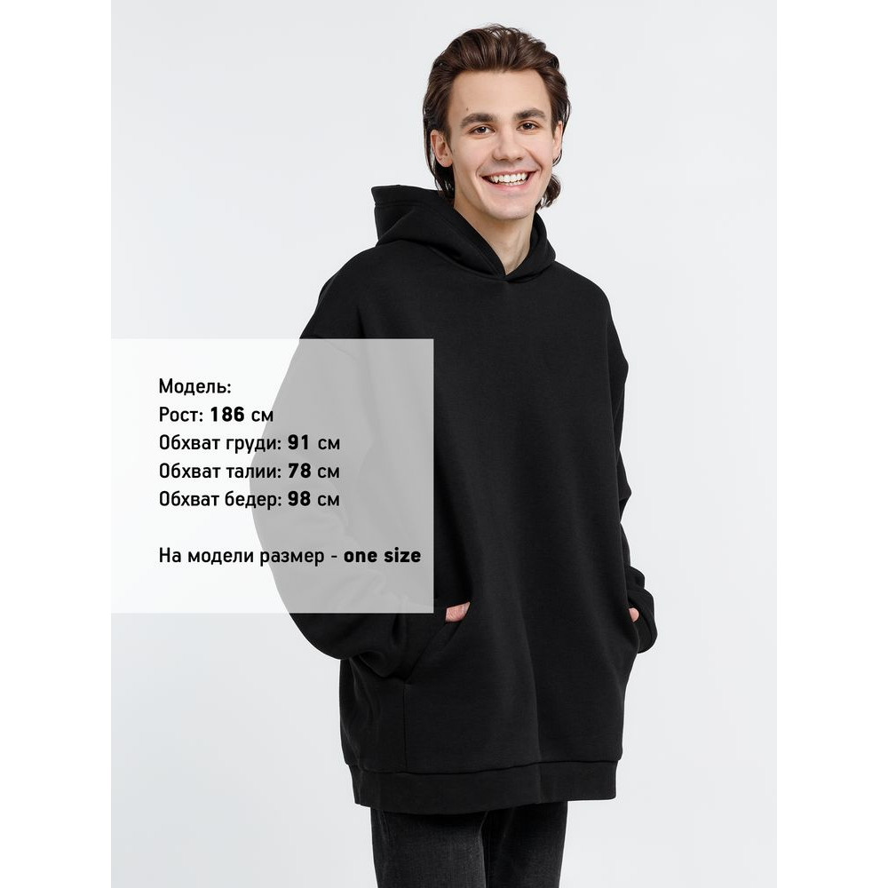Худи унисекс One Size со спущенным плечом и карманами в боковых швах.