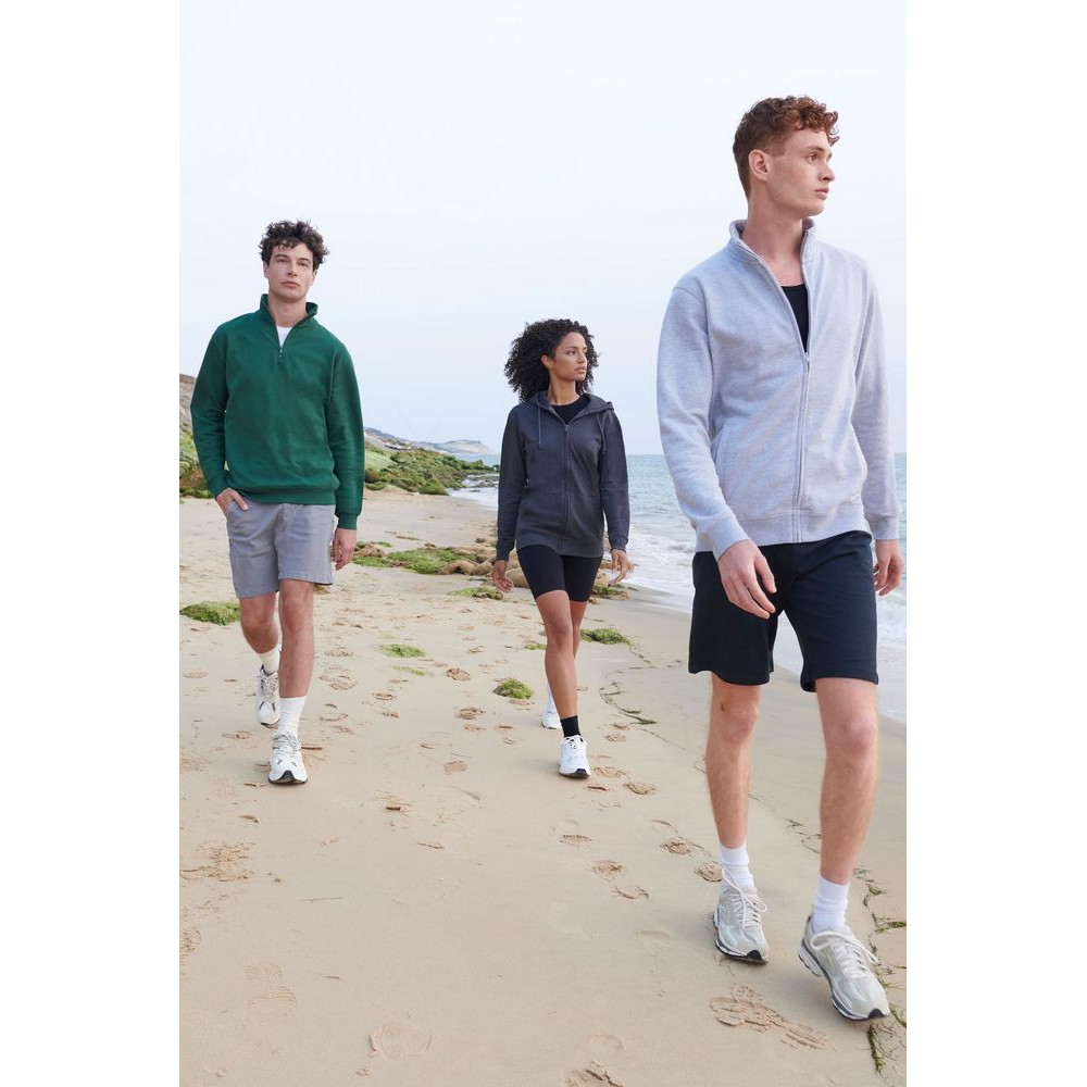 Толстовка унисекс на молнии без капюшона выполнена из хлопка с добавлением переработанного полиэстера.
