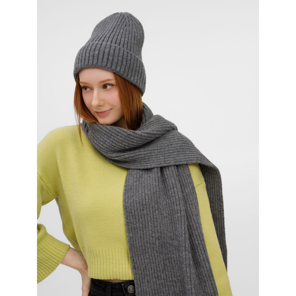 Шапку можно носить двумя способами: плотно прилегающей к голове или слегка приподнятой на макушке для создания современного силуэта. Шарф оптимальной длины и ширины позволяет экспериментировать с вариантами драпировки. Набор станет идеальным спутником для городских прогулок и поможет создать элегантный образ без лишних деталей.