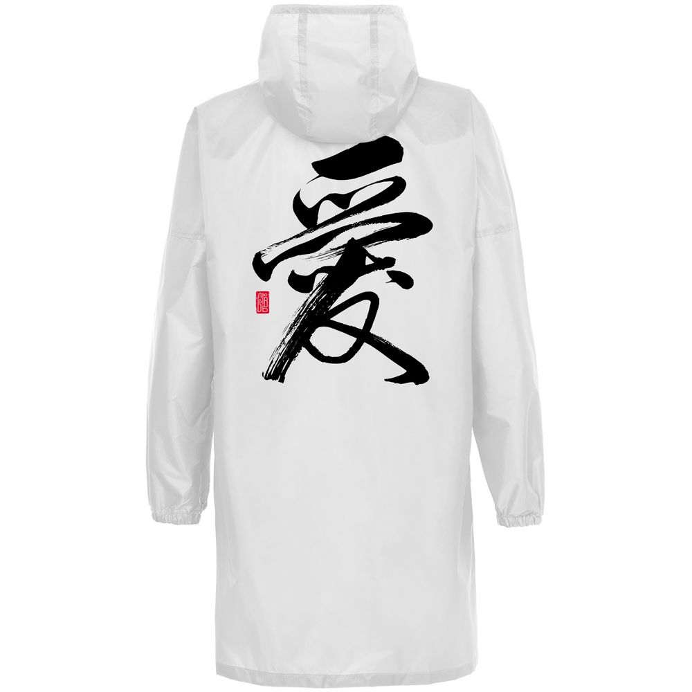 Иероглифы коллекции «Вечные ценности» выполнены в жанре каллиграфии на древнекитайском диалекте мандарин. Плавные линии символизируют внутренний баланс и фокусировку на главных жизненных ориентирах.Плащ-дождевик из ткани таффета на молнии с капюшоном. Складывается в мешочек — удобно брать с собой.