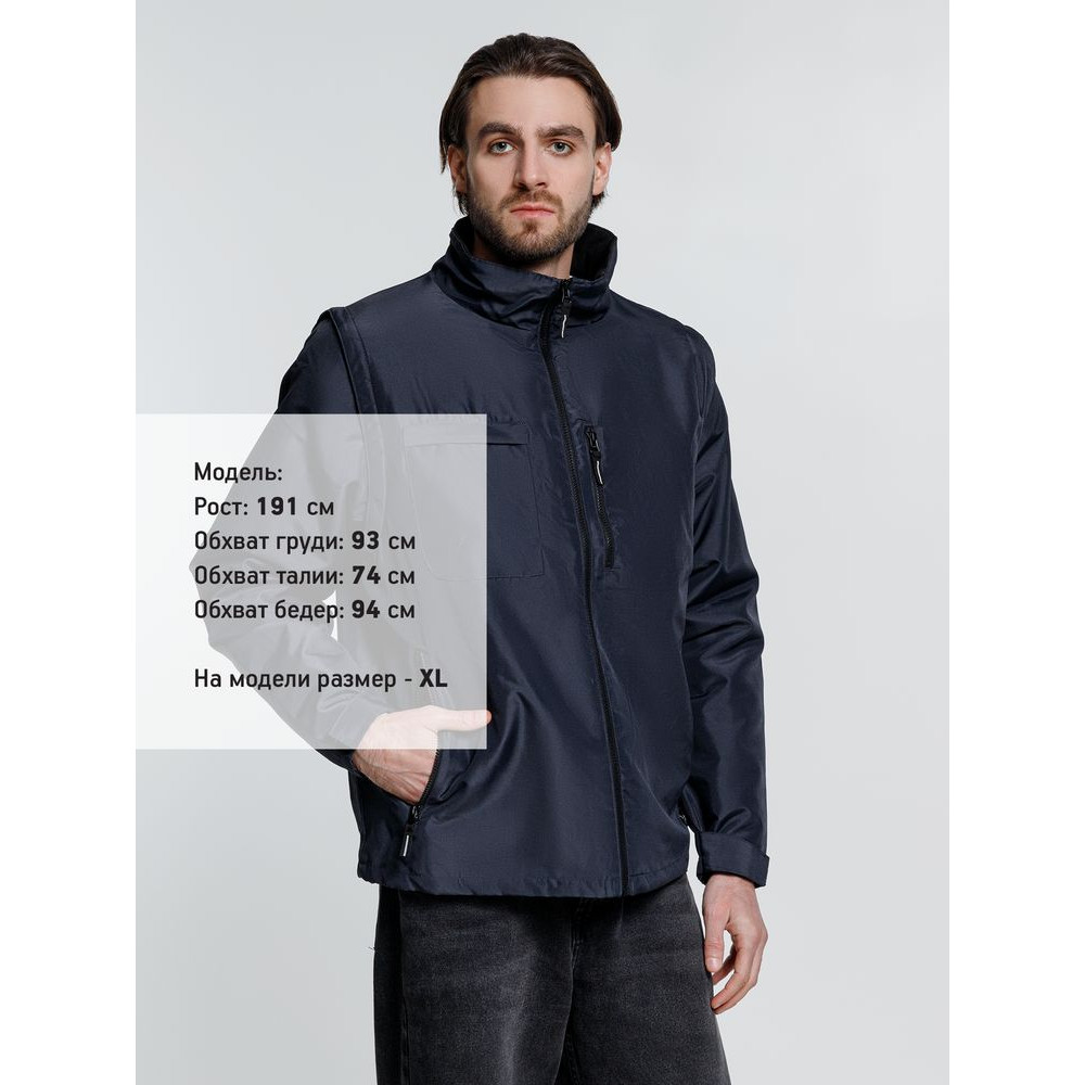 Куртка-трансформер, которая превращается в утепленный жилет. Выполнена из ткани оксфорд с водоотталкивающим покрытием. Модель унисекс.