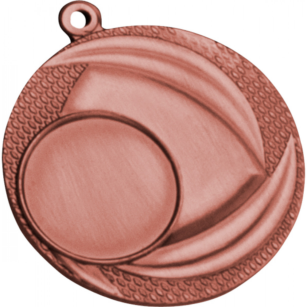 Медаль металлическая, круглой формы. Диаметр 40 мм, толщина 2,5 мм.¶Цвет медали, имитирующий золото/серебро/бронзу.¶Сверху расположено округлое ушко для крепления ленты.¶В центральной левой части лицевой стороны медали расположено место под вкладку, диаметр 25 мм, имеет тонкую окантовку. Фон медали в виде маленьких овалов, расположенных близко друг к другу. Рядом с правой частью места под вкладку имеется гладкая поверхность и два элемента в форме вытянутых рельефных листов, огибающих место под вкладку.¶На медали нет никаких других изображений, нет рисунков, относящихся к конкретному виду спорта.