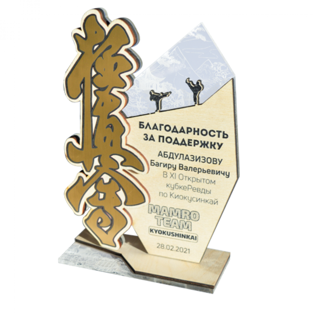 Приз из акрила 4-слойный (дерево и два слоя пластика) с УФ-печатью