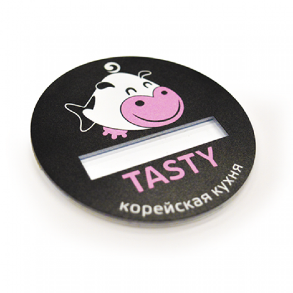 Материал - однослойный пластик белого или черного цвета, толщиной 0,8 – 1,6 мм. Это наиболее практичный для бейджа материал, стойкий к загрязнению, царапинам и воде.