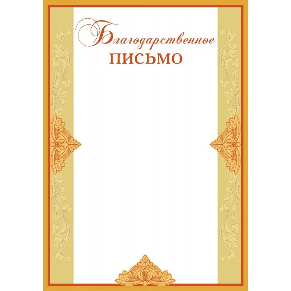 Благодарственное письмо, формат А4. Бумага матовая, толщина 200 гр, полноцветная печать. Фон охристого цвета. По центру расположено поле белого цвета. Слева, справа и снизу поля изображен растительный орнамент зеленовато-оранжевого цвета. Все обрамлено в раму темно-красного цвета. Вверху поля написано «Благодарственное письмо» в две строки. Слово «Благодарность» выполнено курсивным шрифтом темно-красного цвета. Слово «письмо» выполнено прямым шрифтом темно-красного цвета.¶