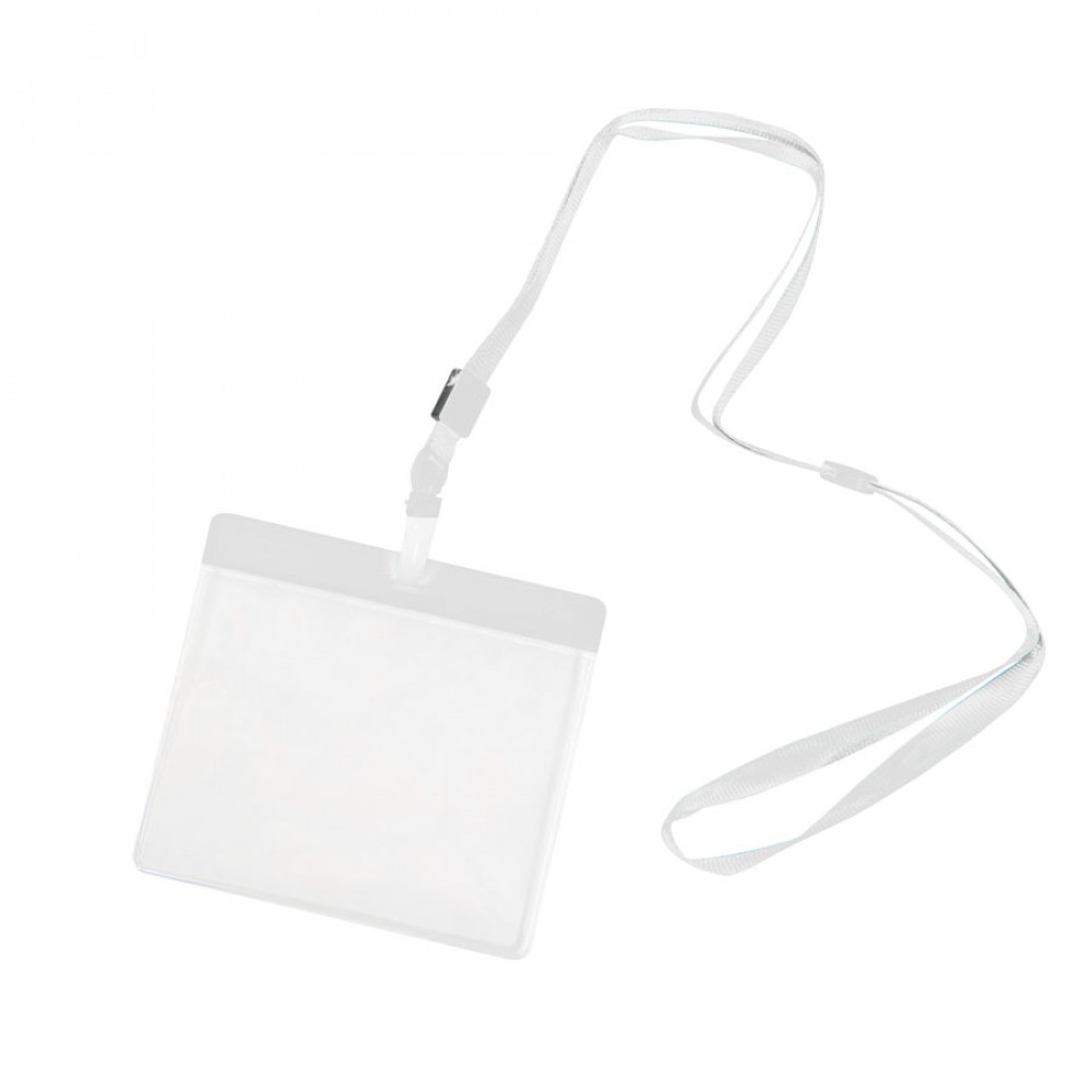 Ланъярд с держателем для бейджа MAES, белый; 11,2х0,5 см; полиэстер, пластик; тампопечать, шелкограф