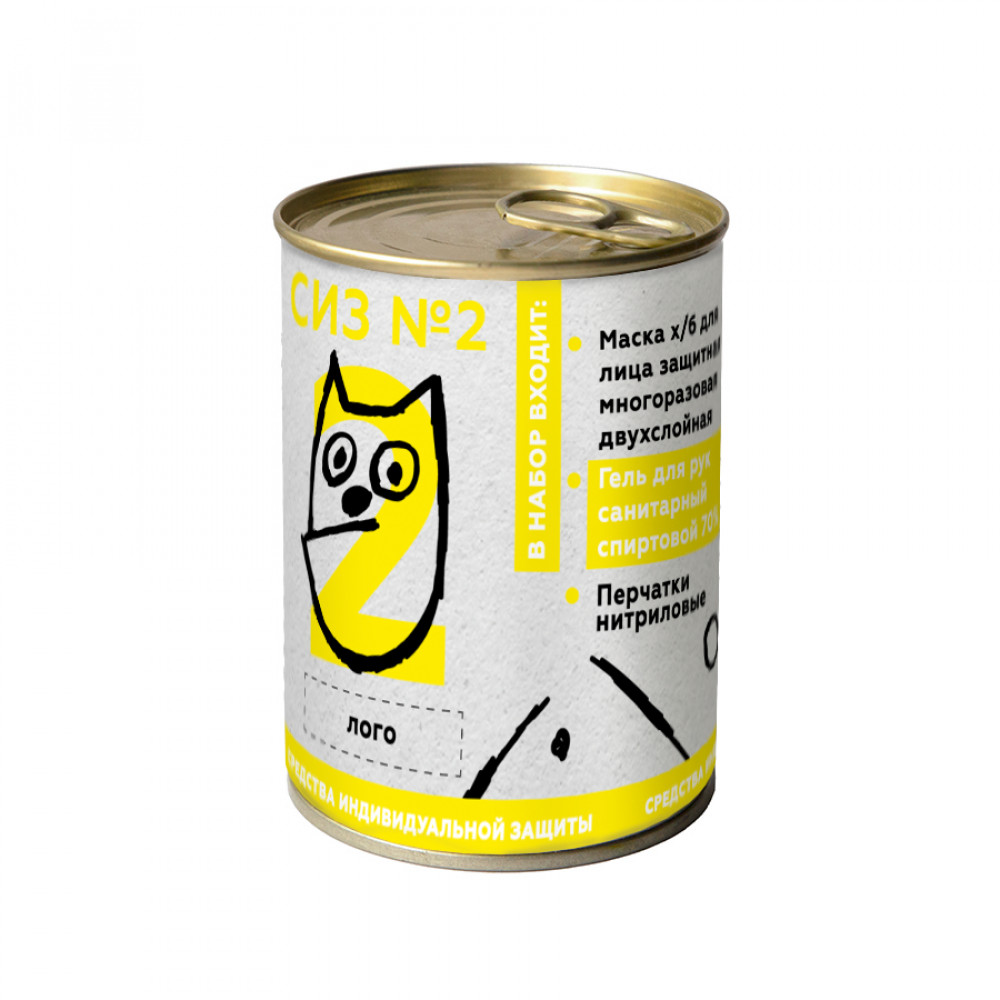 • Комплект СИЗ #2 (маска серая, антисептик, перчатки белые), упаковано в жестяную банку