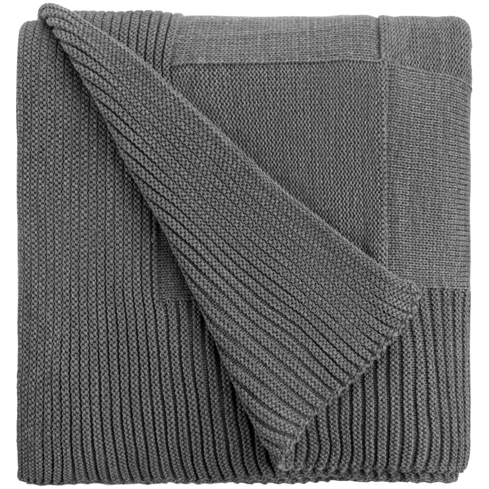 Однотонный плед рельефной вязки «в клеточку» с широким кантом, выполненным резинкой.