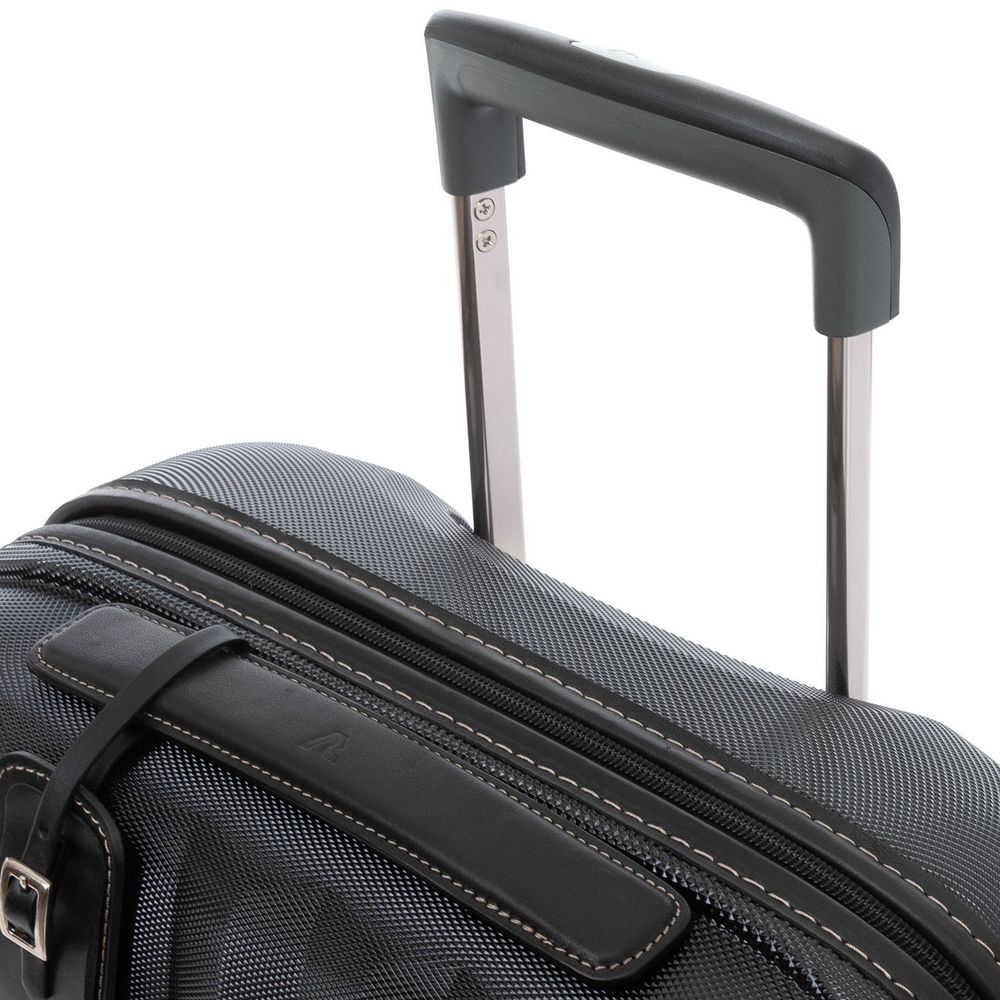 Наружные и внутренние элементы — ручки, фурнитура, обрамление молний и адресная бирка — выполнены из натуральной кожи, благодаря чему чемодан E-Lite приобретает по-настоящему изысканный вид.