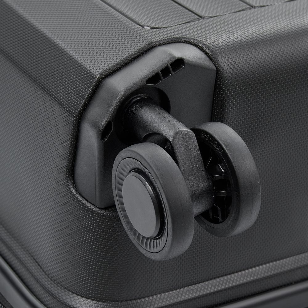 - Блок крепления колеса встроен в корпус чемодана, что обеспечивает лучшую устойчивость к внешнему воздействию