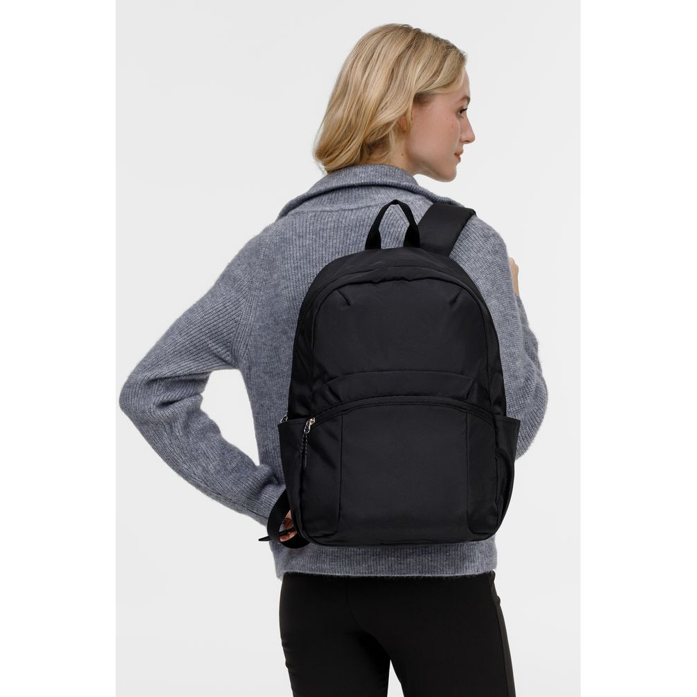 Спинка с мягким наполнителем равномерно распределяет нагрузку, а регулируемые плечевые ремни позволяют настроить их длину под себя. Расположение молнии полукругом позволяет полностью раскрыть основное отделение, что значительно упрощает процесс упаковки и извлечения вещей.