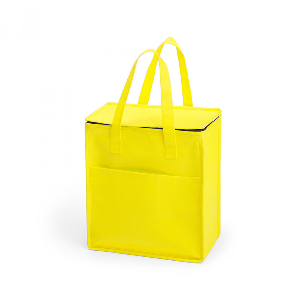 Универсальная сумка-холодильник из нетканого материала с практичной ручкой для переноски, застежкой-молнией и передним карманом. Внутри изотермическое алюминиевое покрытие.