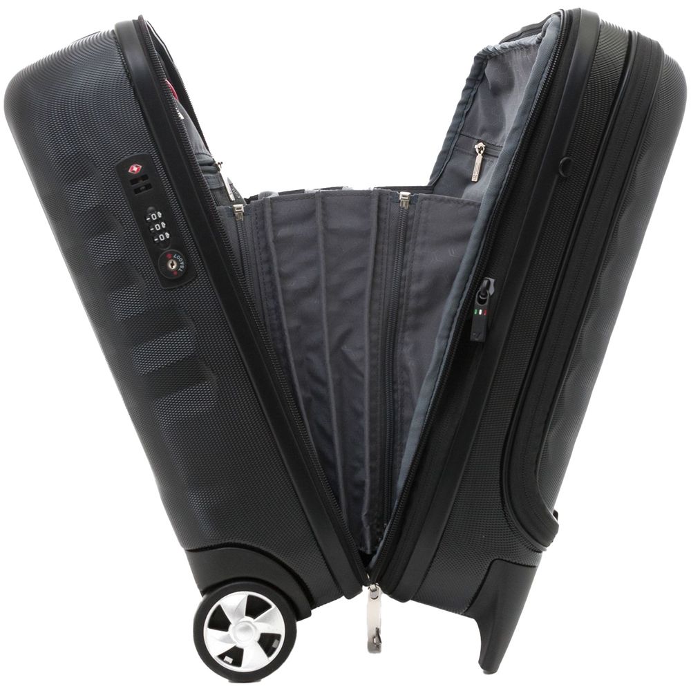Изделие прослужит долго и сохранит первозданный вид, поскольку изготовлено из прочного поликарбоната Makrolon: поверхность имеет ребристую фактуру, препятствующую появлению царапин. Вместительный и небольшой мобильный офис можно брать в салон самолета в качестве ручной клади —все важные документы и гаджеты всегда будут под рукой.