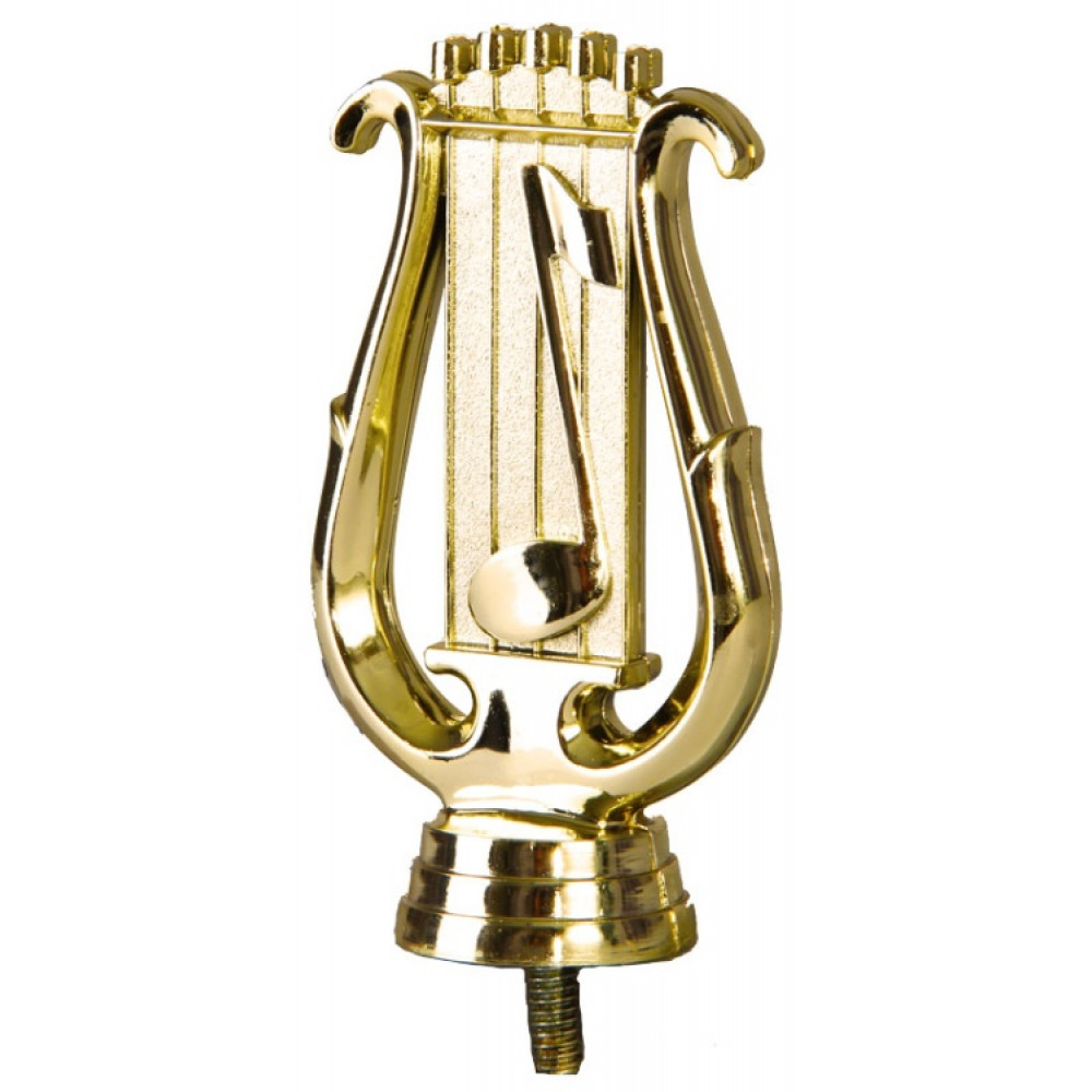 Цвет: золото, материал: пластик. Тема: лира. Фигурка выполнена в виде музыкальной ноты, расположенной на нотной грамоте. Нотная грамота расположена в центре лиры. Фигурка выполнена в золотом цвете, что придаёт ей роскоши и уникальности. Высота, см: 10.8 Вес, кг: 0.037. Фигурку возможно закрепить на цоколь, постамент или кубок.