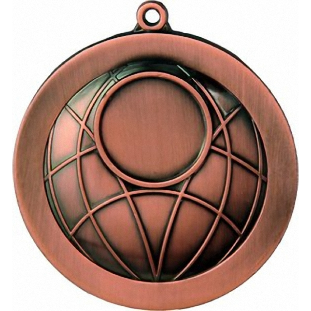 Медаль металлическая, круглой формы. Диаметр 70 мм, толщина 3 мм.¶Цвет медали, имитирующий золото/серебро/бронзу.¶Сверху расположено округлое ушко для крепления ленты.¶Медаль имеет широкий кант. В верхней центральной части аверса медали расположено место под вкладку, имеет кант, диаметр 25 мм. Вокруг места под вкладыш изображены рельефные условные линии меридианов и параллелей глобуса (всего 8 линий, две из которых расположены горизонтально). Вокруг условного глобуса имеется свободное место вдоль всей окружности, шириной 5 мм.¶На медали нет никаких других изображений, нет рисунков, относящихся к конкретному виду спорта.
