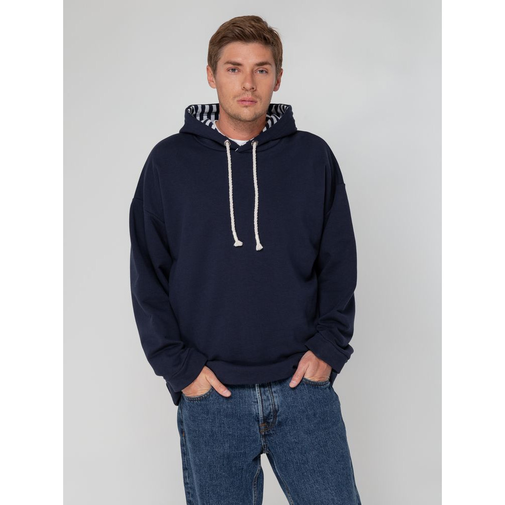 Худи унисекс в морском стиле со спущенным плечом и карманами в боковых швах.